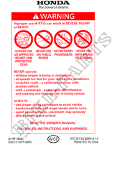 TRX450R4 Honda user manuals